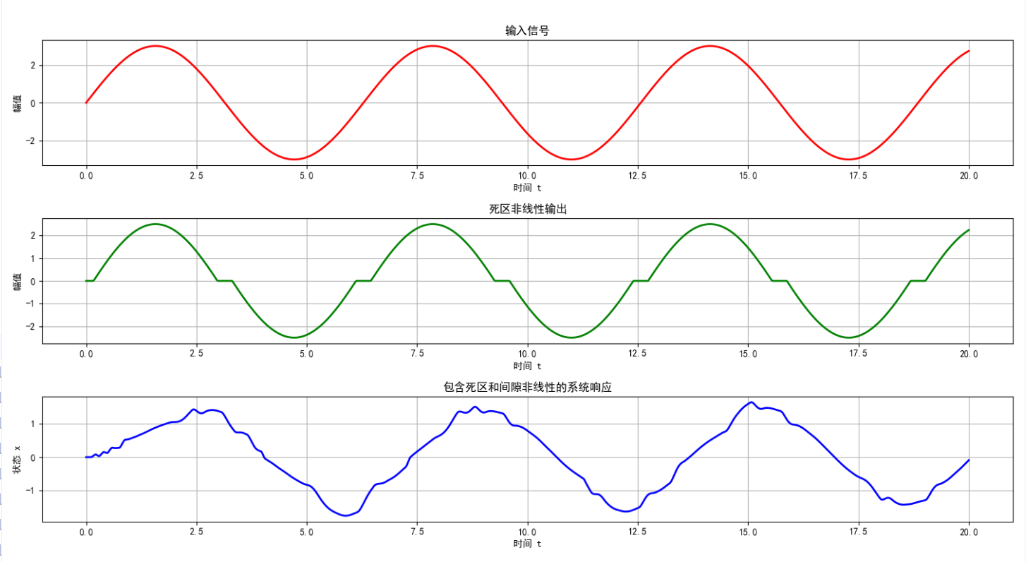 下面我们将模拟一个同时包含死区和间隙非线性特性的系统,并分析其响应特性: