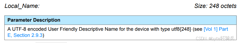 Local_Name 参数的最大长度为 248 个字节。实际名称的长度可能会小于这个最大值,并且名称的末尾不需要用空字符(null terminator)填充。如果名称的实际长度小于 248 个字节,则剩余的空间可能会被忽略或用于未来的扩展。