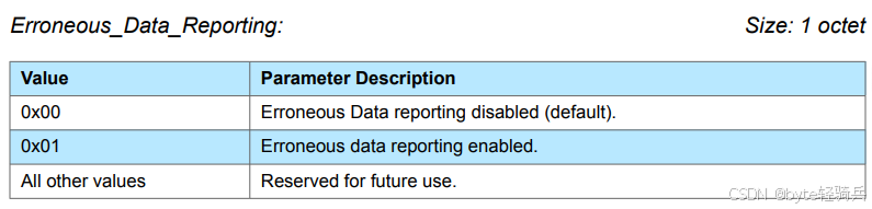 Erroneous_Data_Reporting参数用于指定当数据包出现错误时,蓝牙控制器是否应该在HC数据包的状态标志中设置Packet_Status_Flag。这个参数的值决定了控制器的行为。