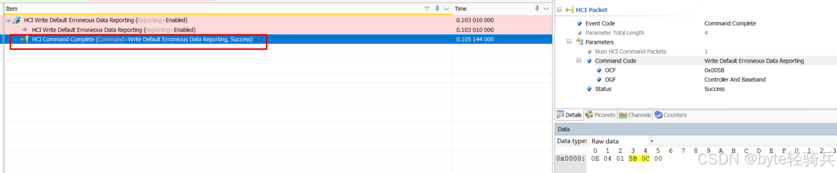 HCI_Write_Default_Erroneous_Data_Reporting命令成功执行。意味着蓝牙控制器已经根据提供的参数更新了其错误数据报告的行为。HCI_Write_Default_Erroneous_Data_Reporting命令执行失败。在这个范围内,每个状态码都对应一个特定的错误原因。蓝牙Controller错误代码全面概览_蓝牙错误代码-CSDN博客HCI_Write_Default_Erroneous_Data_Reporting 命令。HCI_Command_Complete 事件中,通过 HCI 接口发送回主机。HCI_Command_Complete 事件。以下是一个简化的C语言代码示例,用于模拟HCI_Write_Default_Erroneous_Data_Reporting命令的执行流程。请注意,这只是一个概念性的示例,并不包含实际的蓝牙硬件接口或蓝牙栈的实现。