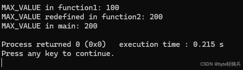 // printf("MAX_VALUE after undef in function1: %d\n", MAX_VALUE); // 这将不会编译通过