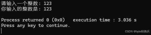 std::cout << "输入成功,你输入的整数是: " << num << std::endl;