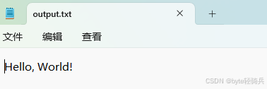 向文件 output.txt 中写入一行文本,然后通过检查 outFile.fail() 的返回值来判断写入操作是否成功,并输出相应的提示信息。
