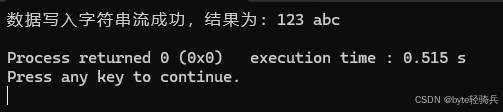 std::cout << "数据写入字符串流成功,结果为: " << oss.str() << std::endl;
