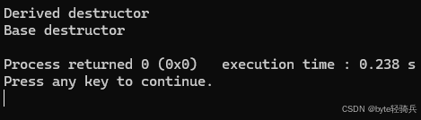 // 程序结束时输出:Derived destructor、Base destructor