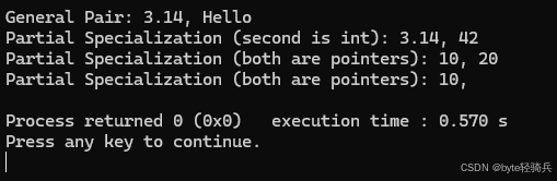 Pair<int*, std::string*> p4(&x, nullptr); // 使用部分特化 (both are pointers)