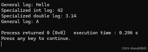 Logger<char>::log('A'); // 使用通用版本