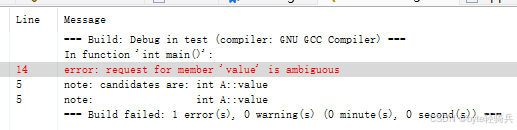 // std::cout << d.value << std::endl; // 编译错误:'value' is ambiguous(d.B::A::value 或 d.C::A::value)