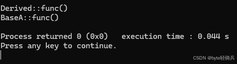 class BaseA { public: void func() { std::cout << "BaseA::func()" << std::endl; } };