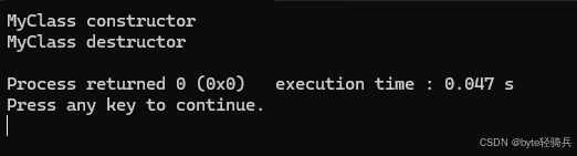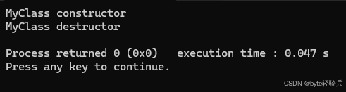 ~MyClass() { std::cout << "MyClass destructor" << std::endl; }