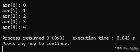 std::cout << "arr[" << i << "]: " << arr[i] << std::endl;