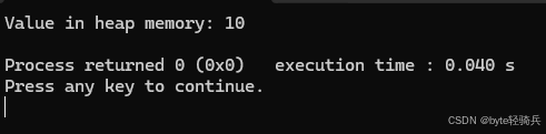 std::cout << "Value in heap memory: " << *ptr << std::endl;