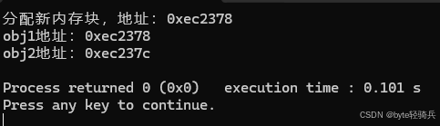std::cout << "obj2地址:" << obj2 << std::endl;