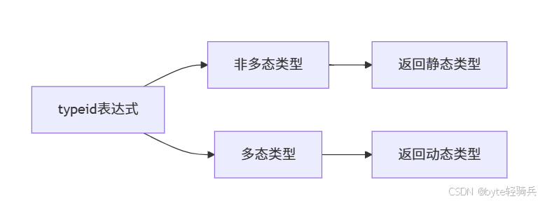 const type_info& ti3 = typeid(*base_ptr); // base_ptr是多态类型指针typeid的行为取决于操作数是否为多态类型: