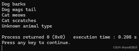 Animal对象无法转换为Dog或Cat,因此输出Unknown animal typedelete基类指针时调用正确的派生类析构函数)场景 3:交叉转换(Crosscast)