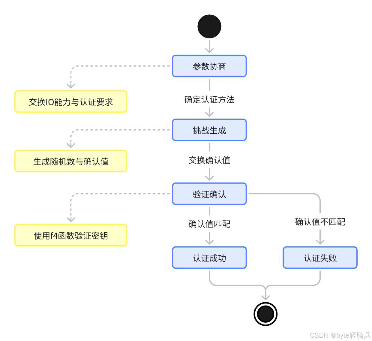 LE SC 的 MITM 验证过程可抽象为一个状态机模型,包含参数协商、挑战生成、验证确认三个关键状态: