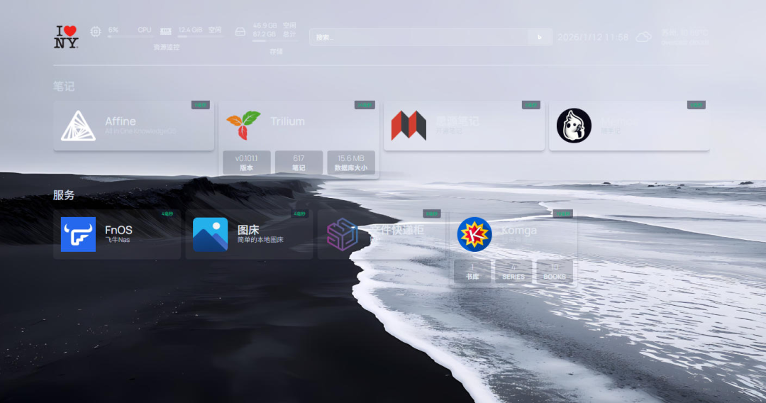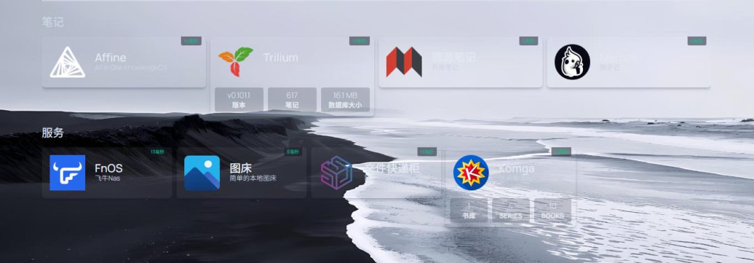 家里的小主机安装了许多服务,每个服务都有一个网页地址,为了能够快速打开对应地址,在网上找了许多个性化导航应用,