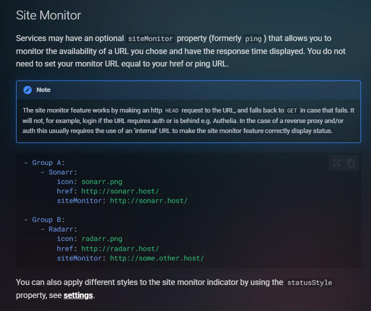 配置中siteMonitor可以指向服务地址,来测试服务是否存活,官方介绍如下