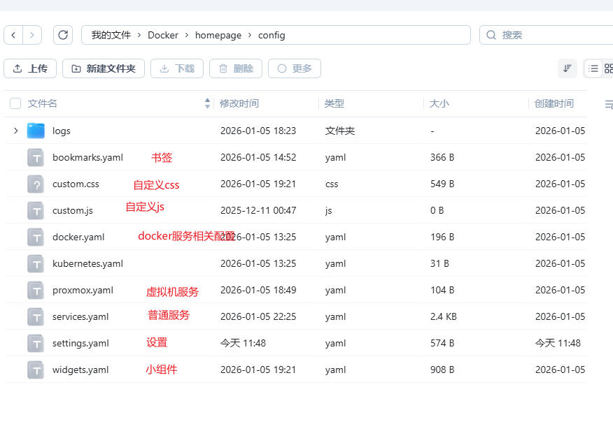 PGID: 1000我们需要把服务的配置文件夹挂载到本地目录中,还有挂载一个图标的目录,来保存应用的图标和图片。
