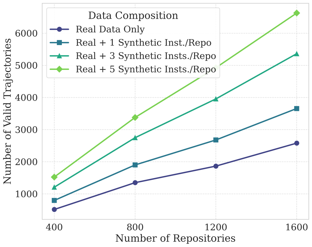 图 4:随着合成实例的增加,有效轨迹数量显著增长