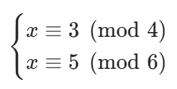 由于 3、5、7 两两互质,CRT 能通过构造法快速求出解。但如果遇到模数不互质的方程组,比如: