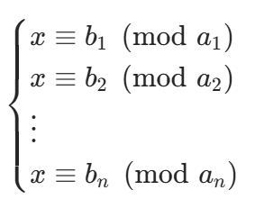 题目描述:给定 n 组非负整数ai、bi,求解关于 x 的方程组的最小非负整数解: