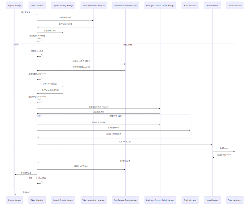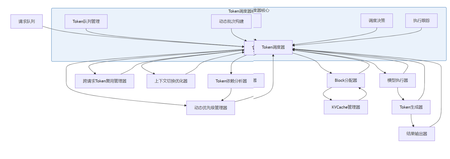 这个架构图展示了vLLM Token级调度的核心组件和它们之间的关系。