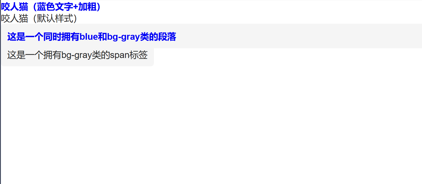 <p class="blue bg-gray">这是一个同时拥有blue和bg-gray类的段落</p>