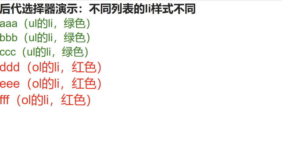 color: red; /* 标签选择器:红色 */