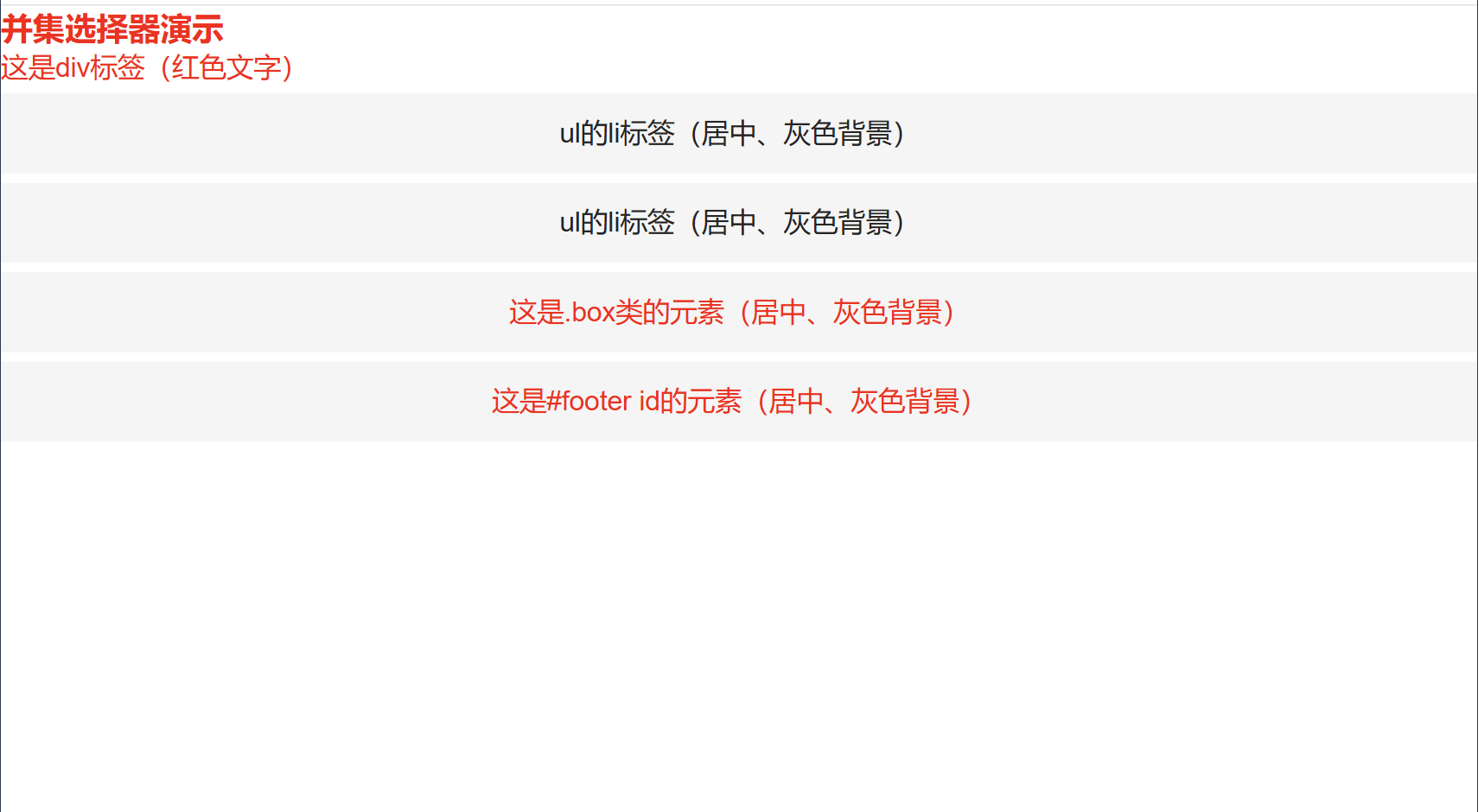 <h3>并集选择器演示</h3>