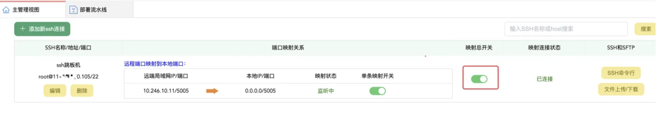 如下图所示,是一个映射机房内网IP到本地5005端口的例子: