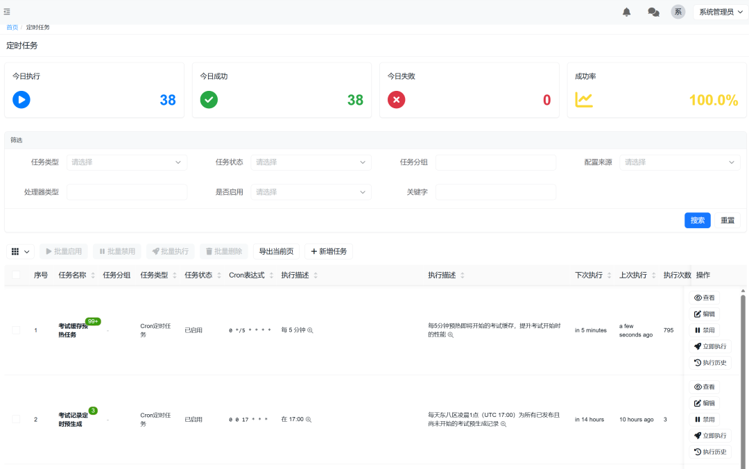 │ [📊 今日执行] [✅ 今日成功] [❌ 今日失败] [📈 成功率] │