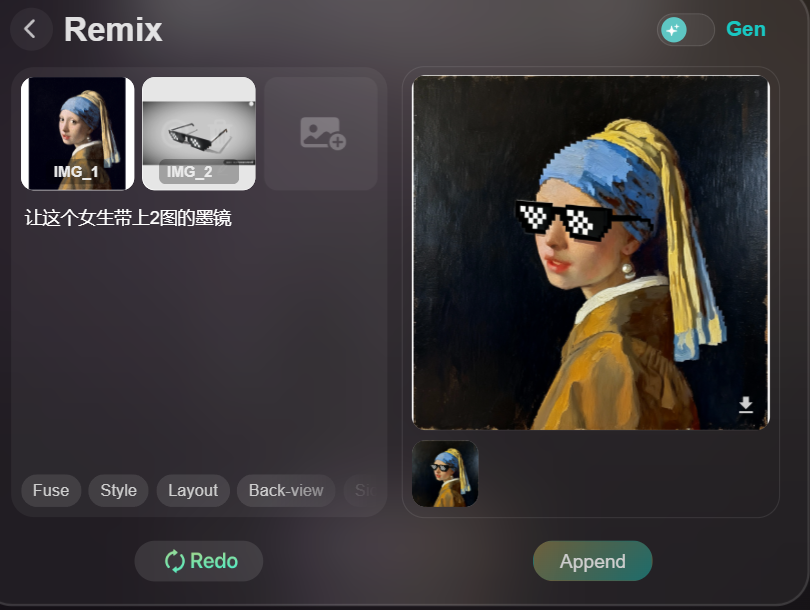 比如把戴珍珠耳环的少女和墨镜都上传上去,一起融合。