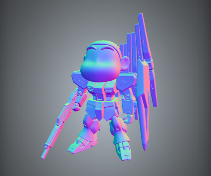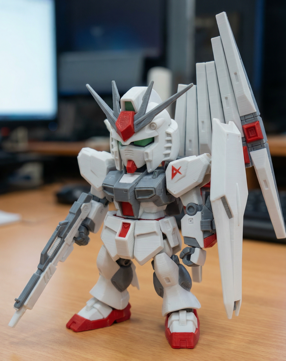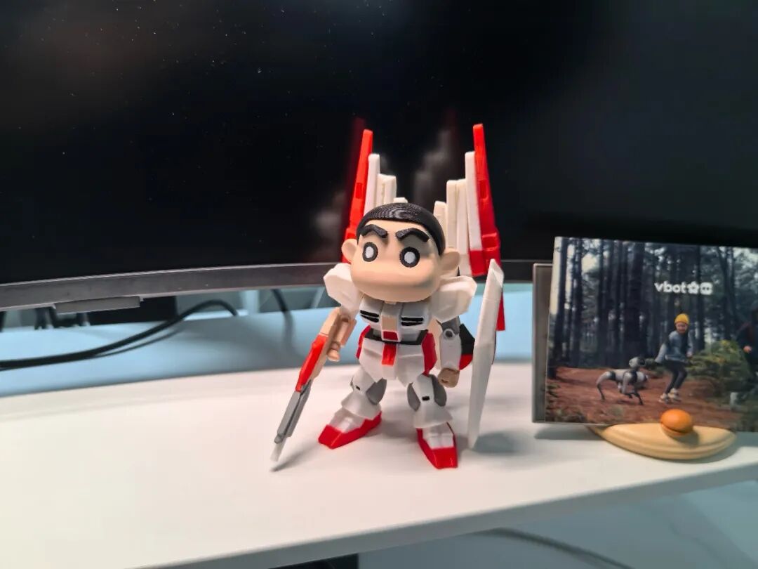 于是,我们又把那个蜡笔小新机甲,3D打印了出来,放在桌上当装饰。