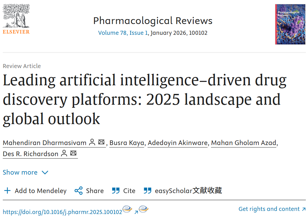 2025年11月10日,格里菲斯大学研究人员在《Pharmacological Reviews》期刊上发表文章,题为“Leading artificial intelligence–driven drug discovery platforms: 2025 landscape and global outlook”。文章系统回顾了AI药物发现这一浪潮前沿的代表性公司、它们近期取得的关键里程碑,以及截至2025年整个领域所发生的结构性变化。