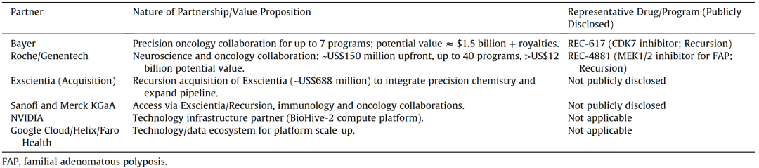 表2 Recursion Pharmaceuticals战略合作伙伴及合作性质