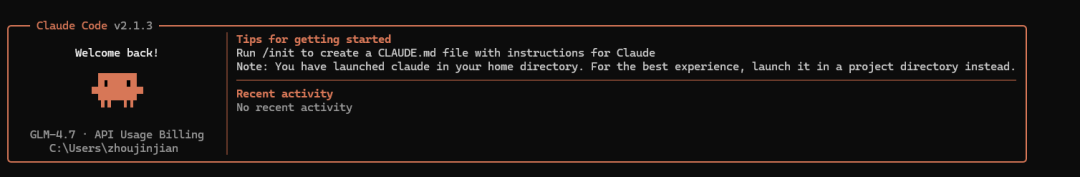 1、以Claude Code为例,其它AI工具也类似,先安装并进入到Claude Code 交互终端,如果还不知道怎么安装Claude Code,可以看这篇:99% 的人都不知道的 Claude Code 使用技巧!