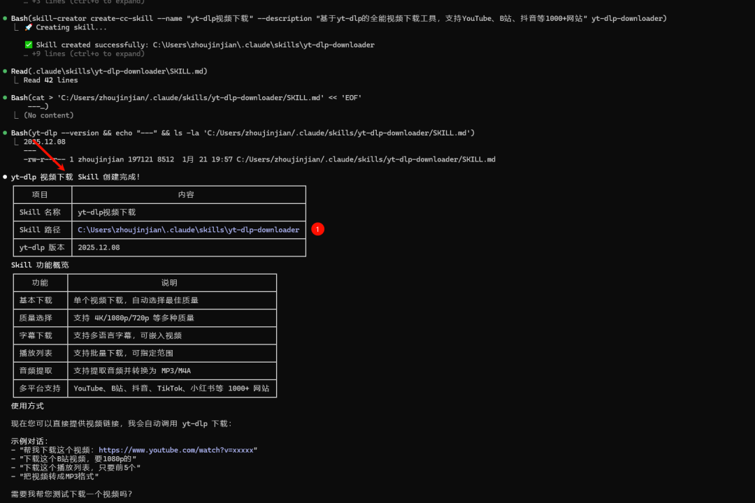 帮我把这个开源工具https://github.com/yt-dlp/yt-dlp打包成一个Skill,只要我后续给出视频链接,就可以帮我下载视频。