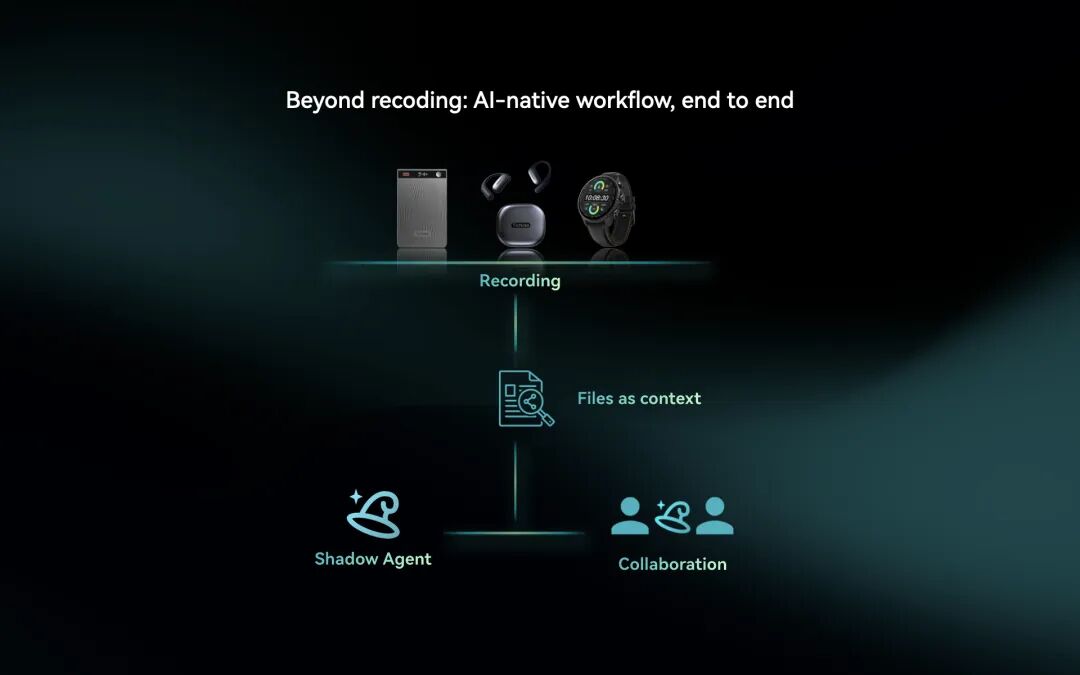 录音 → 转写 → 摘要 → 行动项 → 协作执行 ,全程由Shadow AI驱动,形成闭环。