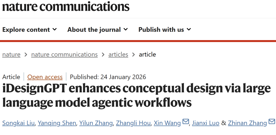 Liu, S., Shen, Y., Zhang, Y. et al. iDesignGPT enhances conceptual design via large language model agentic workflows. Nat Commun (2026).