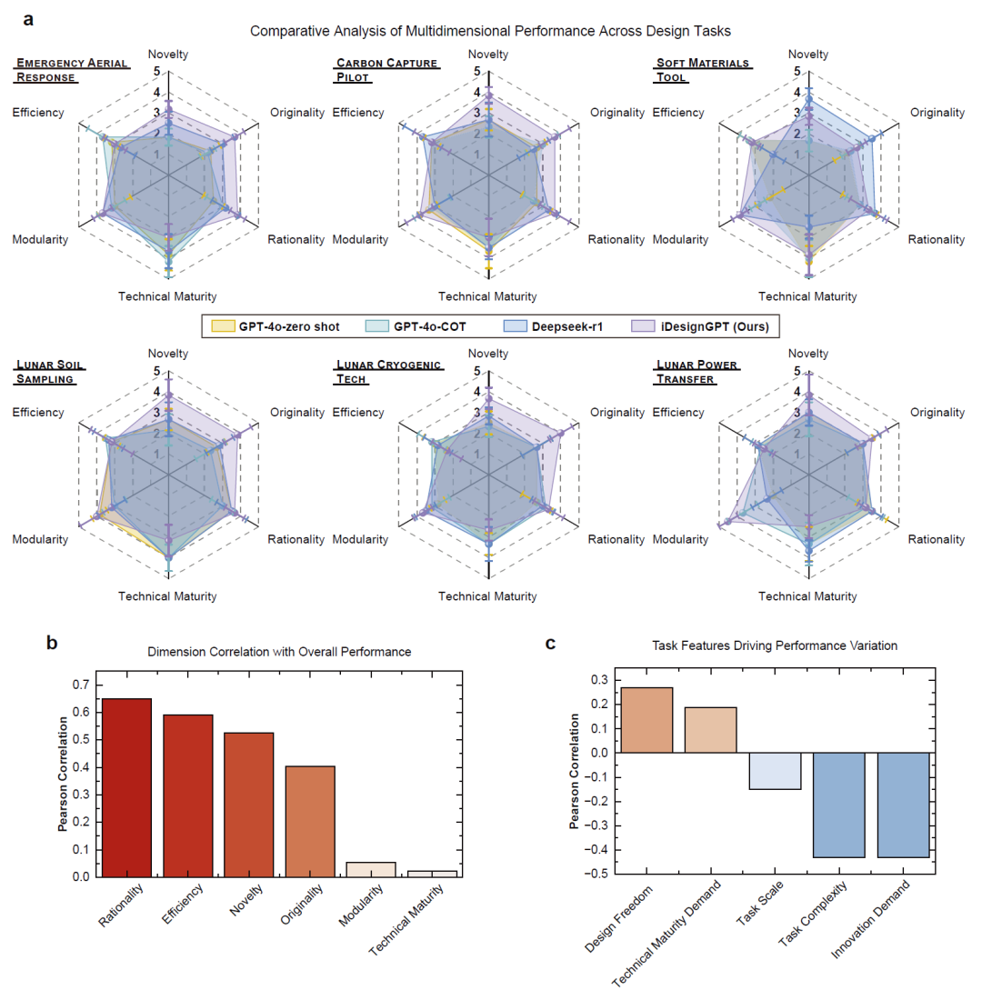 结果表明,iDesignGPT 能在保持创新性的同时兼顾工程合理性,在多种任务中优于现有大模型工作流。