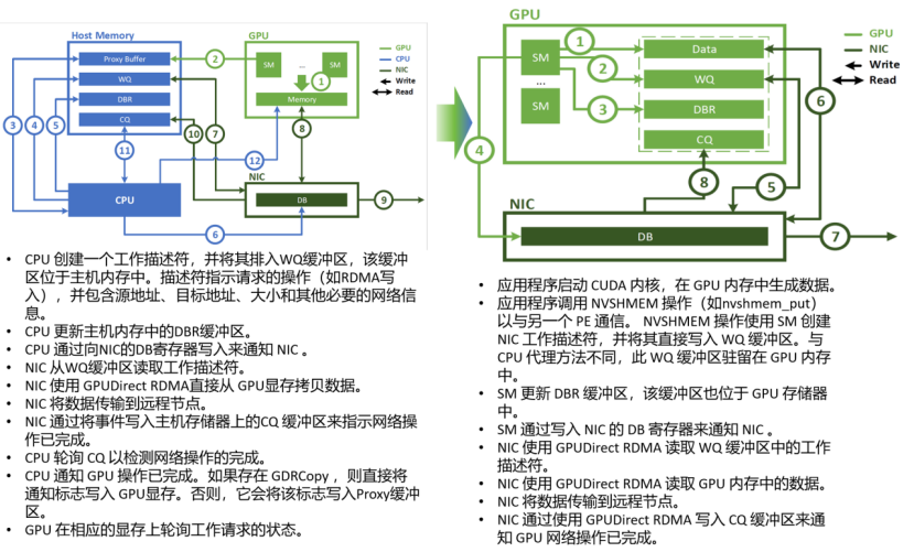 在GPUDirect改善了数据路径的传输性能之后,在2016年,CUDA8.0中还进一步发布了GPUDirect Async技术,通过该技术,可以优化GPU和网卡之间的控制路径,把CPU进一步解放出来。