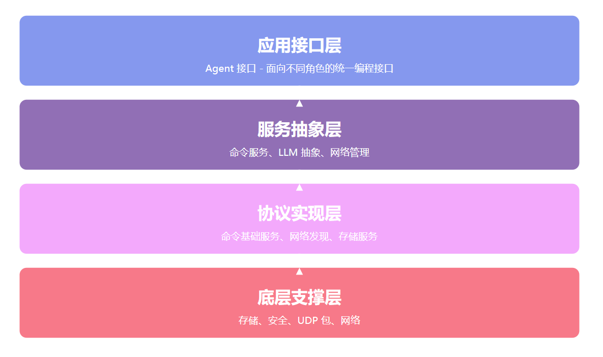 应用接口层 | 开发者统一入口 | 封装各类 Agent 接口,提供面向终端/路由/管理角色的统一编程入口,无需关注底层实现 |
