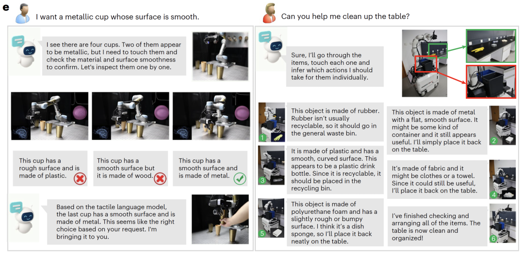 最高层级的应用体现在常识指引下的功能决策与推理。DOVE 不仅解析当前的物理数据,还能将实时的触觉反馈与预训练的大模型常识相结合,从而推断物体的潜在功能并做出逻辑决策。