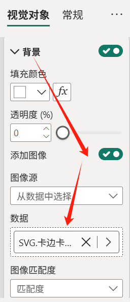 实现方法为在Power BI卡片图的背景区域添加SVG图像度量值: