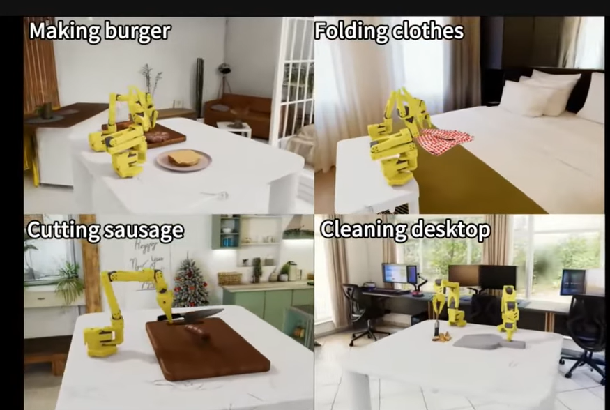 生成后的场景支持多样化优化操作:通过 “生成式扩展” 功能,可针对空白区域或缺失部分,用文本或图像补充描述,实现场景扩容,甚至能逐步还原相邻房间,构建更大规模的环境;也可进行主题编辑,在保留原有布局和光照的基础上,修改场景美学风格,快速生成多个变体,满足机器人训练所需的环境多样性需求。