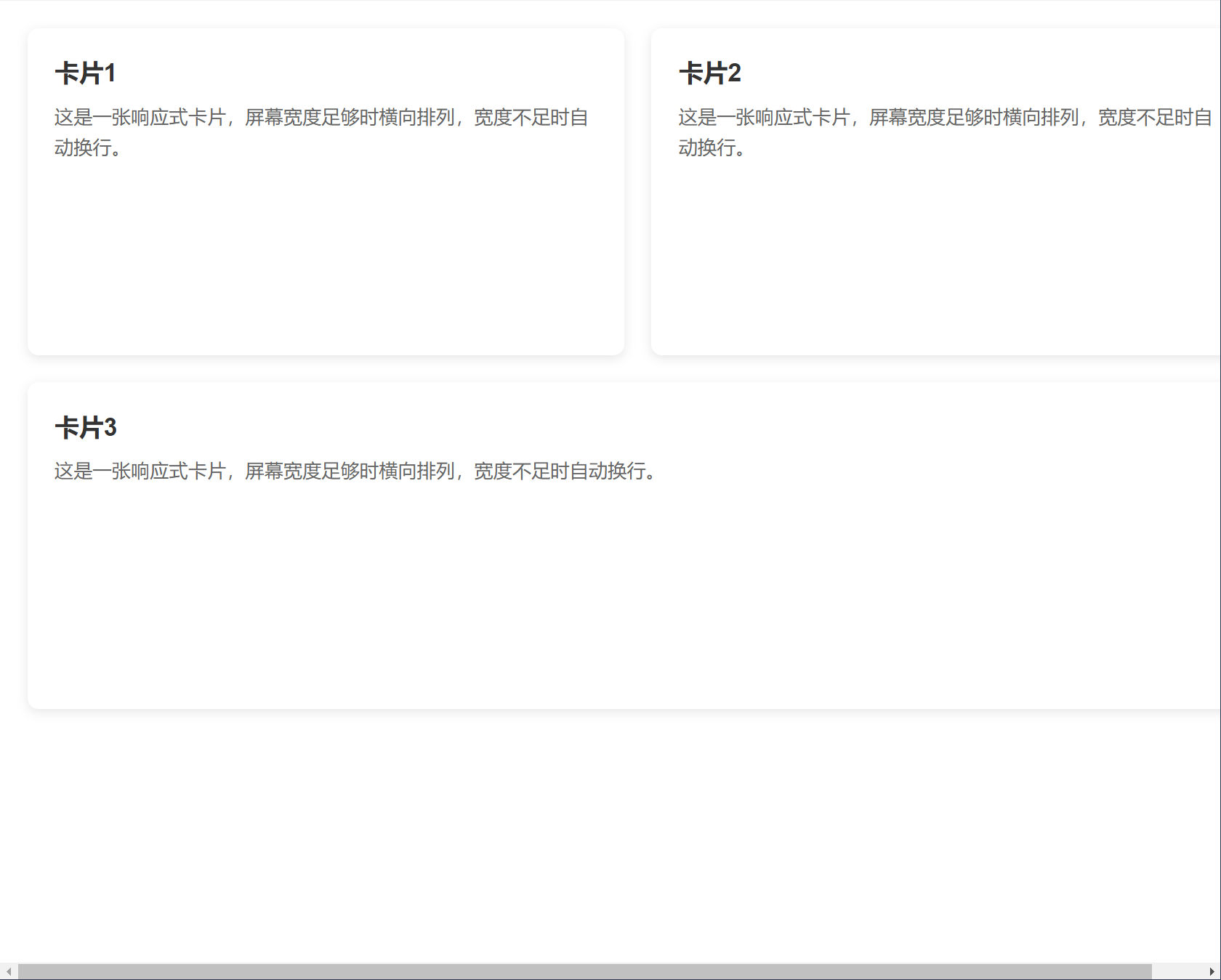 }效果:三个项目平均分配容器剩余空间,最终宽度相等,是自适应布局的最常用写法。