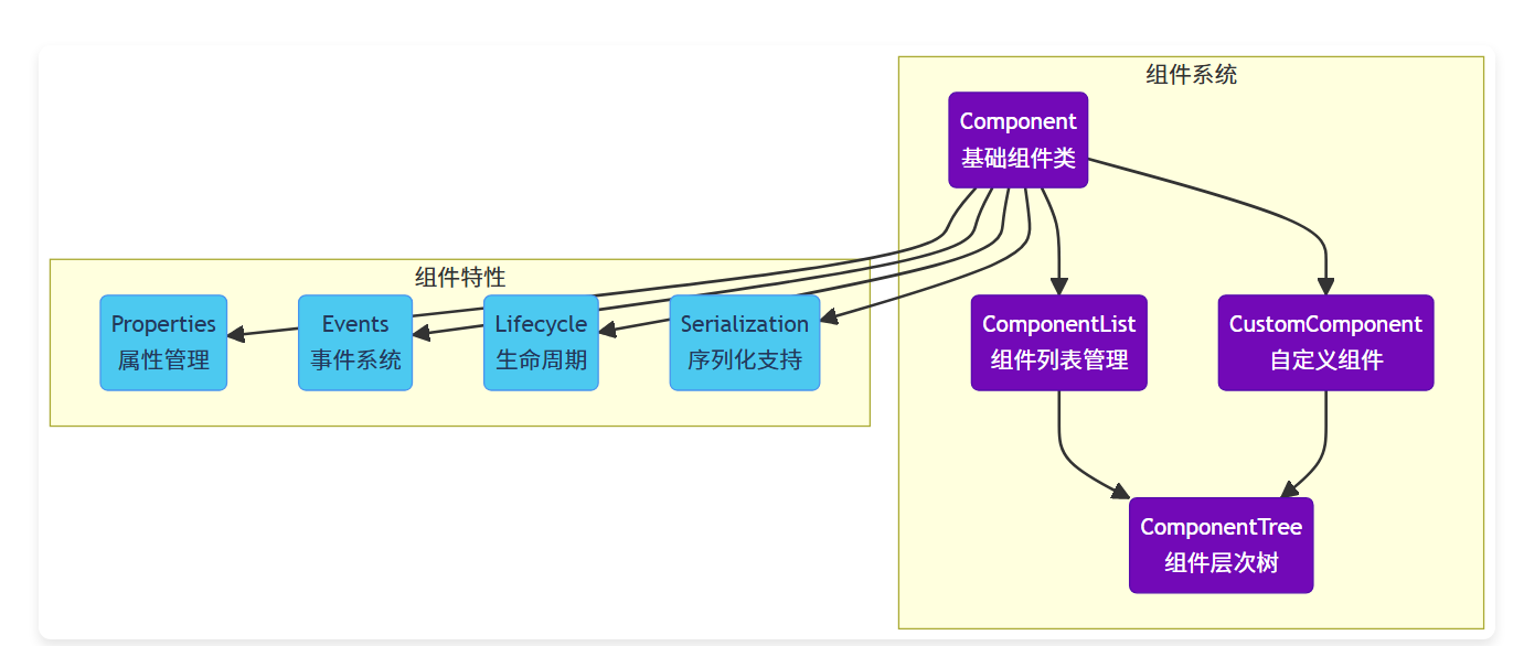 • 事件系统:基于类型的事件分发机制,支持组件间的通信,满足企业级应用的复杂交互需求