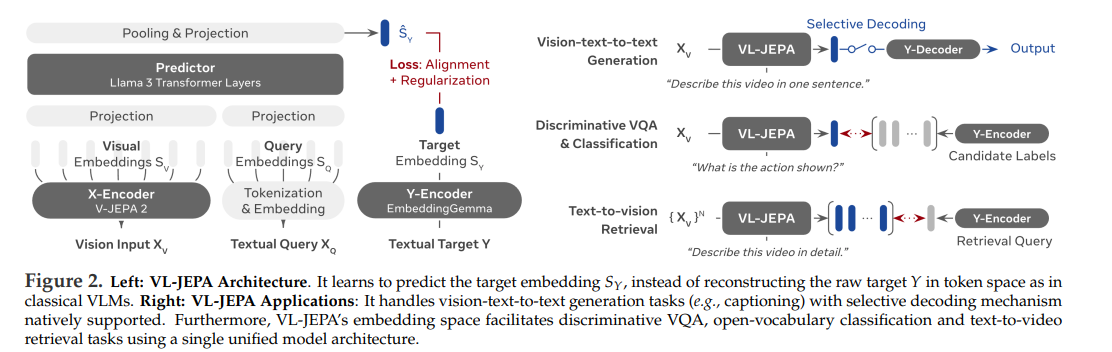 VL-JEPA: Joint Embedding Predictive Architecture for Vision-language (2025.12)