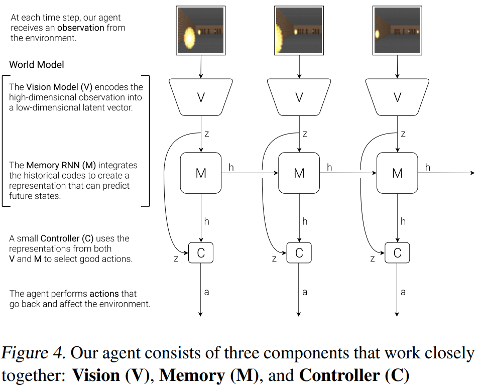 其中V和M模型的设计目前看都相对简单,但是因为他的阶段是分层的,所以每个模块的设计可以根据最新模型进行替,比如RNN换为Transformer。